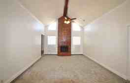 This beautiful brick 3-2-2 residence offers a fantastic layout and desirable features throughout. From the spacious living room with its vaulted ceiling, skylights, and floor-to-ceiling brick fireplace, to the lovely primary suite, this home is ready for your personal touches. Front entry leads to the elegant formal dining, defined by a tray ceiling, decorative wainscoting, and a stylish chandelier, with ample natural light from the bay windows. The living area features a focal point fireplace and large arched windows create a stunning and inviting atmosphere. The kitchen offers lots of cabinet and counter space along with appliances including a built-in microwave, dishwasher, disposal and stove. Your spacious primary suite boasts vaulted ceilings, plush carpet, and great natural light. The primary bathroom includes separate vanities, jetted tub. separate shower and walk-in closet. A private backyard patio area is perfect for outdoor enjoyment, and the property includes a detached rear-entry garage. This home offers a perfect blend of comfort and style in a desirable location. Come see all the wonderful features this home has to offer! No pets please.