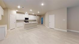 2021 Construction Gem with lovely drive up appeal. Home features: Austin Stone front elevation brickwork; beautiful and bright Open Concept Floor Plan with lots of natural light. Home is super clean with tons of space and plenty of elbow room to move around. Open Kitchen has extra large island, ss appliances, gas range, and lots of cabinet space. XL Laundry Utility Room. Ceramic Tile plank flooring in all common areas and carpeted bedrooms. Primary Bedroom has a big bathroom with an XL walk in closet, oversized double shower, and double vanity. The 3 secondary bedrooms are separated away from the Primary bedroom. Large 20 foot Peaceful Back Patio with view of natural tree line through custom steel fencing. Pristine Green Bermuda Lawn with front landscape package and full sprinklers. Double front garage with auto opener.