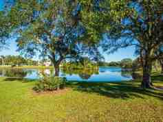 Recently refreshed home in a park-like setting with lake view! Open living space, freshly painted, generous rm sizes and beautiful views! Master suite has walk-in closet and ensuite bath. Washer/dyer in garage. Huge screened porch overlooks fenced backyard with large shed. A short walk to the community center w/2 pools, shuffleboard and playground-all included w/rent! Please note: Utilities, cable, water, trash, and lawn care are not included Close
