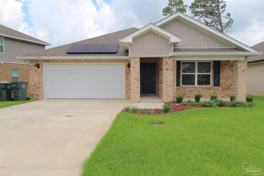 This spacious 4-bedroom, 2-bath brick home with a 2-car garage is located in the newly developed Lakeshore Preserve neighborhood in Beulah. It features an open floor plan with wood-look flooring throughout the main living areas and carpet in the bedrooms. The kitchen includes white cabinetry, granite countertops, stainless steel appliances, a pantry, and a large island with bar seating that opens to the living and dining areas. The primary suite includes a ceiling fan and a private bathroom with a dual-sink granite vanity, a walk-in shower, a water closet, and a large walk-in closet. Additionally, three well-sized bedrooms share a full bathroom with a tub and shower. Other notable features include an indoor laundry room with washer and dryer hookups, a covered back porch, an unfenced backyard, and solar panels that enhance energy efficiency and may help reduce utility bills. Pets are welcome with owner approval and a non-refundable pet fee of $250 per pet. Residents are required to have renter liability insurance, which can be added for $11.95 per month, or they may opt into the Resident Benefits Package (RBP) for $45 per month. The RBP includes renter liability insurance, HVAC air filter delivery, and on-demand pest control; further details are available in the application.