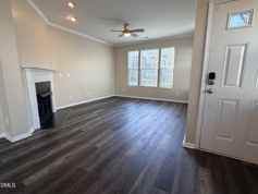 Prime Raleigh location in Renaissance Park! Brick-front end-unit townhome with 2 bedrooms and 2.5 baths. Wide plank LVP flooring spans the main level, filled with natural light and anchored by a corner gas-log fireplace with wood mantle. Kitchen features granite countertops, white cabinetry, and matching black appliances. Upstairs offers two spacious bedrooms, including a primary suite with vaulted ceiling and walk-in closet, while the second bedroom includes its own full bath and walk-in closet. Enjoy a fenced backyard with patio for outdoor living. Convenient to downtown Raleigh, shopping, dining, parks, and major commuter routes. Available March 14, 2026.