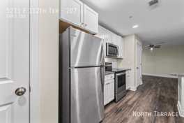 -Modern kitchens with stainless steel appliances (including fridge, stove, dishwasher, and microwave)