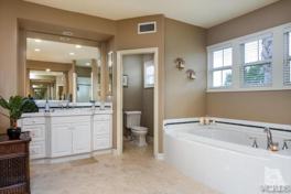 This lovely executive home is located behind the gates of Estates at North Pointe. Main features of this home include 5 bedrooms, 4.5 baths, plus an office and media room. The garages are both 2-car garage with direct access, and a 1-car garage. Flooring is absolutely gorgeous and includes hickory hardwood, travertine, tile and neutral carpeting. Kitchen is light and bright with white cabinetry, neutral granite countertops and top-of-the-line stainless steel appliances. There is one bedroom and bath located on the main level, and the balance of the bedrooms are upstairs. If you work out of your home, then you'll love the convenience of a formal office just off the living room, featuring a peek-through fireplace. The backyard hardscape and landscape are spectacular, making this home perfect for entertaining. Lovely pebble-tec pool, spa, waterfall, firepit, and plenty of room on side yard area for BBQ'ing on the built-in BBQ and simply enjoying the outdoors.