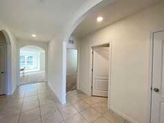 Waterview! Stunning 3 bedrooms and 2 bathrooms house is located at Four Corners. Just next to the Champions Gate and walking distance to Publix and restaurants. This house was built in 2022. Large 2-panel sliding glass doors lead out to overlook pond in the backyard. The home has carpet & tile flooring throughout, open concept eat-in kitchen boasting new stainless steel appliances, and a large island perfect for gatherings with family and friends. Retreat to the primary bedroom complete with a walk-in closet and en-suite bathroom with everything you need to relax and recharge after a long day. Nestled away just 25 minutes from all Orlando's attractions. The community features a clubhouse with a swimming pool and many more amenities. The washer/dryer are included. Tenants will be responsible for watering the grass and lawn cut, internet and utilities. Application fee is non-refundable.