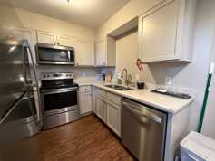 This updated unit offers an ideal location and features hardwood flooring throughout, stainless steel appliances, and beautiful white quartz countertops in the kitchen. The floor plan includes one bedroom downstairs and another upstairs, along with a versatile loft space perfect for a small den or home office. Enjoy a private outdoor patio and access to the community pool. The exterior was recently refurbished by the HOA, giving the property a fresh, modern look. Schedule a tour today!
