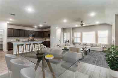 Beautiful single-story, energy-efficient home! This 4-bedroom, 3-full bath home with office offers 2,164-sqft of modern comfort! Enjoy 9-ft ceilings, granite and quartz counters, an electric fireplace, walk-in pantry, spacious laundry room, and finished garage. Energy-saving upgrades include closed-cell foam insulation in attic and walls, double pane low-E windows, LED lighting, gas range, and tankless water heater. Community pool and park steps away and easy access to I-30!