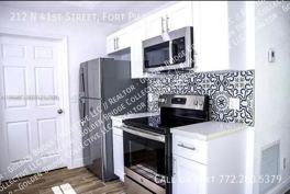 Beautiful updated 3-bedroom, 1-bath home set on an expansive 9,000+ sq ft lot in a peaceful Fort Pierce neighborhood. This charming Mid-Century home showcases modern upgrades throughout, including new kitchen cabinets, a stylish tile mosaic backsplash, quarts countertops, stainless steel appliances, a fully tiled bathroom, and wood-look vinyl flooring. Enjoy the privacy of having only one adjacent neighbor from your spacious yard. Conveniently located within walking distance to new shopping plazas and just minutes from the beautiful Fort Pierce beaches, this home offers the perfect blend of comfort, style, and location. Come see it today as it won't last long!