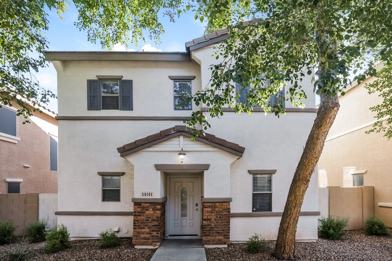 Charming 1530 square foot home in Surprise, AZ. This 4-bed, 3-bath home features a large living room at entrance with room for dining, an eat-in kitchen with island, breakfast bar and plenty of cabinet and counter top space, private bedroom and bathroom located downstairs, and master bedroom upstairs with walk in closet and master bath with dual sinks and separate shower and tub. Exterior includes 2-car garage and enclosed yard with covered patio. Homes this well-maintained and move-in ready lease quickly. Schedule our tour and submit your application today.