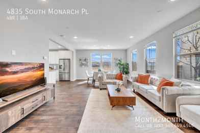Beautifully designed home in the highly desirable area of Ontario Ranch. The spacious 4 bedroom 3 bathroom home features rich hardwood floors and bright, vibrant decor. The large master bedroom features a King bed ensuite bathroom with double vanity, a walk-in shower and a walk-in closet. Other bedrooms are furnished with Queen beds, walk-in closets, airy and bright, and a lot of cabinet storage space. The gourmet kitchen includes stainless steel appliances, granite countertops, and central island with seating. The enclosed backyard is landscaped and easy to maintain, with ample seating room. The community has a children's playground with professional greenbelt landscaping. Close to parks, shopping, and dining, this is a stunning property to call your own!