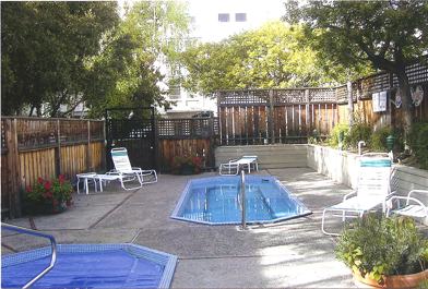 4. On-site daytime management. Courtyard lounging area with Jacuzzi and children's pool. Fitness center. Secure entrance and cctv security system. Non-smoking building. Reserved parking space in secure garage with elevator to floor of unit. Easy street parking.