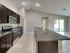 Welcome home to this modern and 4-bedroom, 2-bathroom home for rent in Palm Bay! The open concept living and dining space, complete with soaring vaulted ceilings. The chef-inspired kitchen boasts granite countertops, stainless steel appliances, a large center island, and a convenient pantry. The primary suite offers an oversized closet and en-suite bathroom, while the generously sized secondary bedrooms are bright and feature great closet space. Tile floors throughout the home provide both style and easy maintenance. This Palm Bay rental home is professionally managed by Second Avenue. Contact us and apply online today!