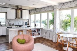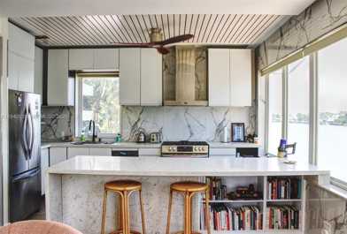 Boutique waterfront condominium located in the desirable Mid-Beach area of Miami Beach. This renovated 2-bedroom corner residence offers expansive views of Surprise Lake, surrounding multimillion-dollar homes, and the Ritz-Carlton Miami Beach. Bright and airy layout with an open kitchen and living area, ideal for everyday living and entertaining.