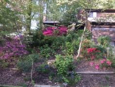 New deck with lovely view of the back yard and subtle lighting for evening enjoyment.