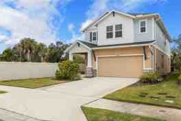 Built in 2022 and located in the heart of Wesley Chapel, this spacious 5-bedroom, 2.5-bathroom home offers a smart layout and modern comfort throughout. The first floor features an open-concept living room, dining area, and kitchen, creating a seamless space for everyday living and entertaining. A convenient first-floor bedroom and half bathroom add flexibility for guests or a home office. From the dining area, step out to the patio and enjoy peaceful conservation views with no rear neighbors.