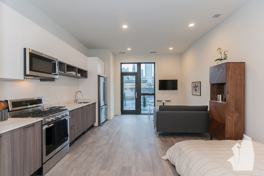 Boutique Elevator Building in the Heart of River North! Featuring 10' ceilings, spacious living area, quartz countertops, stainless steel appliances, upscale fixtures, Core HD Luxury Flooring, and in-unit laundry. Bathroom features Italian marble flooring, designer subway tiles and deep soaking tub. Private terrace in select units. State-of-the-art fitness center, storage room, bike storage, tenant lounge, receiving room, dry cleaner, indoor heated garage with electric charging stations.