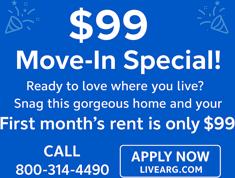 $99 rent for the First TWO Month's Rent - Don't miss out, expires November 21st!