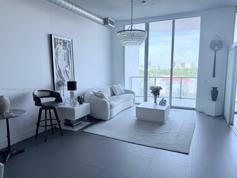Uptown Marina Lofts in Aventura. 3 Bedroom 2 Bathroom modern flow-through NYC Loft style. Water and city views. European kitchen with stainless steel appliances and granite countertops. 11" high ceilings. 2 balconies offering northern and southern exposures and views. Amenities include a gym, sauna, swimming pool, jacuzzi, tennis court, and more. Internet and basic cable included. Designed by renowned architect Kobi Karp, the industrial chic structure stands out boldly from its surroundings.