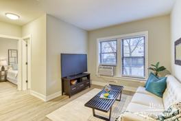 Live in this beautiful courtyard building in the heart of Lakeview! This apartment is located at Brompton and Broadway which is right across the street from Jewel (grocery store), and an easy walk to the Addison Red line. With such a convenient location you have easy access to Lincoln Park, Roscoe Village, Gold Coast, the Loop, Edgewater and Evanston. There are plenty of restaurants, bars and entertainment within walking distance. This one bed, one bath apartment is completely brand new with in unit laundry. The flooring is a designer scratch resistant wood floor with a light grey wash finish. The living room which has great natural light can fit most large couches. The kitchen features dark Italian cabinetry, granite counter tops and stainless steel appliances. Plenty of storage and counter space to bring all your kitchen essentials. The bathroom which has subway tiles in the bath, quartz counter top with a very convenient ledge along the wall and a vanity with storage. Best of all bring your pets! No breed restrictions! No security deposit!