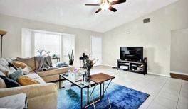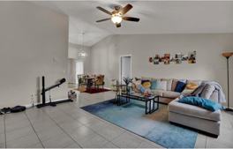 Sun N Lakes duplex with vaulted ceilings. 2 bedrooms / 2 bathrooms. Split floor plan with newer bathrooms. Master suite with walk-in closet and step-in shower. Spacious open family room with cozy den that opens to a screened-in patio. Large backyard ready for a BBQ! One car garage housing a washer and dryer. Located around the corner from community pool, playground, basketball courts, picnic areas, and fantastic golf course. Minutes from schools, grocery stores, restaurants, Advent Hospital, medical offices, and all major shopping. Small pets allowed with approval.