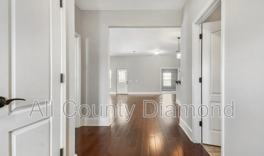 - Hardwood floors throughout the main living spaces and new carpet in bedrooms