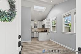 Beautifully updated 1 bed 1 bath ADU with private entrance and yard available now! This unfurnished home is approximately 650 sqft featuring a fenced and private 150 sqft yard, hardwood flooring, fresh paint, in-unit laundry with washer/dryer, high vaulted ceilings with recessed lighting making the space feel larger and brighter. The full kitchen is equipped with ample cabinetry, subway tile backsplash, stainless steel appliances, refrigerator, dishwasher, gas range, microwave, and granite countertops. The full bathroom has the laundry appliances, pedestal sink, shower/sink combo, and mirrored medicine cabinet.