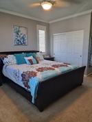 Completely furnished. Queen bed, large closet, flat-screen TV, plantation shutters. All linens, sheets, and towels are provided.