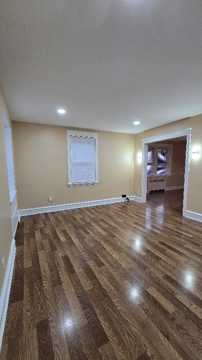 Large sunny 1st floor 2 bedroom / 1 bathroom apartment with private entrance. The apartment has two bedrooms with ample closet space anda balcony off of the master bedroom. The apartment features hardwood floors throughout, tile in the kitchen and bathroom. The kitchen features stainless steel appliances, ample storage space, and breakfast bar looking into large dining room. The living room is sunny with ample windows. The bathroom features a full tub shower combo and ample storage space. Front yard and free drivewa parking. Free Wifi, washer and dryer, with cold water and garbage collection included. Gas (hot water, stove, radiator heat) and electric paid by tenant.