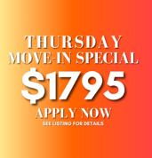 Ready for Immediate Move-In! THURSDAY MOVE-IN SPECIAL! $1795 MOVE-IN, if moved in on or before this Thursday (latest possible move-in date)! Move-In special includes the refundable security deposit, admin fee and ONE WEEK FREE RENT! $85 paid per month towards refundable security! Prorated rent is due one week after move-in! 1st full month of rent is due on MAY 1ST! (Animal fees are not included in this move-in special and are due at move-in if applicable)