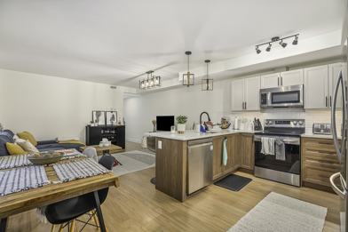 A chef-inspired kitchen complete with brand-new stainless steel appliances, ample storage, and plenty of counter space — ideal for cooking and entertaining