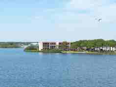 Watch the dolphins play! 2br/2ba end unit Dunedin condo with 38 foot balcony offers sunset views over the Bay, park & private beach! Tenant leaving shortly. Yearly unfurnished rental is bright and spacious, with split BR plan, lots of closets, snack-in window kitchen, big master suite with walk-in closet and step-in shower, mostly tile floors & covered parking in security building. On-site private beach, waterfront parks & clubhouse, rec building, heated pool, tennis- even place to launch your kayak! Walk to shopping & restaurants, with the Pinellas Bike Trail across the street! rent includes water, trash,cable & WiFi! yearly only, NO pets or smoking. First, last & & security. Note- DR server stays