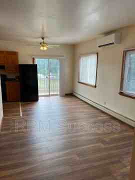 The living area's sliding doors lead to a private deck, your ideal spot to unwind and watch the sunset over the expansive backyard. Plus, your rent covers all utilities—including heat and air conditioning—so you can enjoy a worry-free living experience. With ample off-street parking and a prime location just one minute from Route 140, commuting is a breeze. This isn't just an apartment; it's your next home.