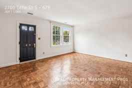 Updated interior unit offers wood floors, custom millwork, and modern finishes with a classic touch. The main level includes a spacious living room and full-sized front-loading laundry tucked neatly beneath the staircase. The kitchen features granite counters, stainless steel appliances, extended cabinetry, and extra counter space, and has been opened to the dining area for convenience. The dining area provides access to the back deck, ideal for grilling or indoor/outdoor entertaining. The upper level includes a bedroom with a custom wood accent wall and hidden lighting, plus closets with overhead storage and custom glass shelving. A second bedroom with built-in shelving, desk, and large closet is also located upstairs, along with a full bath showcasing white tile, marble counter, and gold finishes. Arlington Village amenities include an outdoor pool, tennis courts, wooded paths, and courtyards, with ample parking available. Convenient location with nearby shopping, dining, and transit options, plus quick access to Crystal City, Pentagon, and DC.