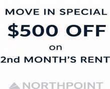 !! OCTOBER MOVE IN SPECIAL: $500 OFF on 2nd MONTH’s RENT !!