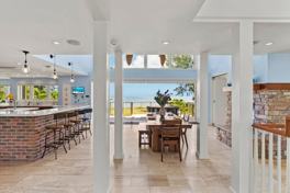 The open kitchen at Waialua Beachfront Estate has extensive counter space, two sinks, high-quality stainless steel appliances, and bar seating, making it easy to enjoy meals at home. A dining space with a gas fireplace and a wall of custom pocket doors flows out to an open-air dining area, or into a comfortable living space with plenty of seating and a sizable television. Downstairs, another common area provides an additional sectional sofa and television, as well as a ping pong table. Amenities such as wireless internet, cable, a DVD player and DVD library, a stereo, a washer and dryer, and a dedicated kids' playroom ensure total guest comfort throughout your stay.