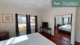 You won’t want to miss this magnificent 10-bedroom, 10.5-bathroom shared apartment in Koreatown. At an impressive 3159-square-feet, this three-story Craftsman house is situated on a small fenced-in lot with a rear patio. Features include a balcony overlooking a small fenced-in backyard, WiFi, and multiple flat-screen TVs, one of which is wall-mounted in the first-floor living space. As a shared apartment in the June network, this Koreatown home includes 24/7 support.