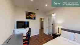You won’t want to miss this magnificent 10-bedroom, 10.5-bathroom shared apartment in Koreatown. At an impressive 3159-square-feet, this three-story Craftsman house is situated on a small fenced-in lot with a rear patio. Features include a balcony overlooking a small fenced-in backyard, WiFi, and multiple flat-screen TVs, one of which is wall-mounted in the first-floor living space. As a shared apartment in the June network, this Koreatown home includes 24/7 support.