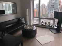 Completely furnished new One Bedroom condo plus Office/Den room with city view in Tate downtown on How street, minutes away from water, False Creek seawall, Stanley Park, Public transit, Restaurants and Groceries on Granville and Davie street.