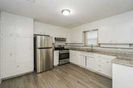 • Modern kitchen: range, fridge, dishwasher, microwave