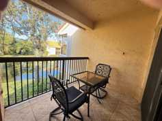 Enjoy water views from this updated 2-bedroom, 2-bathroom corner-unit condo in the Grand Oasis community. This open-concept home offers exceptional privacy, featuring a tranquil balcony overlooking the lake and framed by lush trees. The split-bedroom layout includes a primary suite with its own private bath. The bright living area provides a designated dining space just off the kitchen, perfect for everyday living and entertaining. Grand Oasis offers a peaceful setting near Parkland, plus amenities including a gym, hot tub, tennis courts, and a community pool. Enjoy assigned parking in front of the building and ample guest parking. Move-in ready, private, and perfectly located this condo has it all.