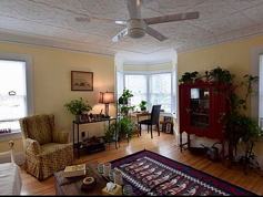 Property has large bedroom with walk in closet, open concept kitchen to living room, Turret window area can make a nice reading area or office space. Office and full bathroom with stain glass window. Newer Anderson window. Great location to 89 and to downtown New London and Sunapee. Across the street from the top of the lake.