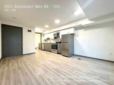 7001 Roosevelt Way Ne #101, Seattle, WA is a 1 bedroom, 1 bathroom apartment for rent. It is located in the Roosevelt neighborhood of Seattle. It has apartment amenities including dishwasher, on-site laundry, and high ceilings. Cats and dogs are allowed, making it a pet-friendly apartment.