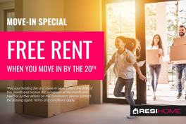 Please ask a ResiHome leasing agent for more details. Renderings and/or photos may not represent actual property. All move in fees must be paid in order to receive concession credit to tenant ledger. Concession credit only applies to rent payments.