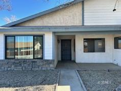 1753 Sq. Ft. Four Bedroom, two bathroom Home. Laminate faux wood in the kitchen, dining area, family room, and hallway. Tile flooring in living room, bathrooms, and indoor laundry room. Carpets in the bedrooms. U-shape kitchen with stainless steel built in microwave, stainless steel range, stainless steel dishwasher, white fridge mosaic backslash and granite countertops. The kitchen is open to an eat-in dining area and family room, which has a Bedrosian Stone fireplace and French doors leading to the covered patio. Tile flooring in seperate Living room. Ceiling fans in each bedroom. Both the guest bathroom, and the primary en suite have cultured marble counter tops vanities , and alcove tub & shower surround combos. (Full Bathrooms).Primary bedroom has a ceiling fan, and French doors leading to the covered patio. Indoor laundry just oof the garage with linen cabinets, counter top for folding and electric & gas hook-ups. Large covered patio, shed, and RV parking. Evaporative cooling and forced air heating. Pets subject to owner approval.