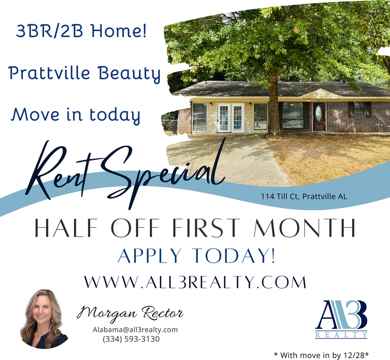 Ideally located in the heart of Prattville, you’ll love being just minutes from shopping, dining, and schools — convenience and comfort all in one! Visit All3Realty. com to schedule your viewing TODAY!!!