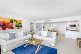 Bright and spacious furnioshed 2 bedroom apartment with unobstructed water views in Belle Plaza! Only split plan unit per floor plan. Completely renovated with a semi open kitchen. Impact windows and sliding door. Enjoy sunrises and sunsets from every room in this gorgeous apartment. Laundry room in the hallway. Easy to show.