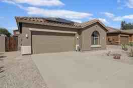 Amazing rental opportunity! This 4 bedroom home has a wide open floor plan, tons of natural light, tile and carpet, custom paint and Solar! Family room has custom wood cabinet shelving, kitchen has gas cooktop, breakfast bar, tons of oak cabinets, pantry, and separate dining area with custom drop lighting. Secondary bedrooms all with good sized closets. Master has large walk-in closet, bath with garden tub, separate shower, and dual vanity. All landscape is low maintenance, back with large, covered patio and fire pit. Enjoy all Estrella has to offer with active community center, rec room, spa, lakes, walking/hiking trails, pools, parks, 2 community gyms, golf and so much more, all at the base of the Estrella mountains!