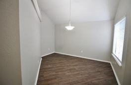 Discover this beautifully updated 3-2-2 home offering a blend of modern style and cozy comfort. With light-filled interiors and a fantastic, tree-lined backyard, this property is ready to welcome you. Relax in the spacious living room with vaulted ceilings, rich wood-look flooring, and a charming corner brick fireplace. The heart of the home, the kitchen, features stylish gray cabinetry, light-colored granite countertops, a crisp white subway tile backsplash, and appliances including a built-in microwave, dishwasher, disposal and stove. The open layout includes a breakfast bar looking into the main living space. The primary bedroom is warm and bright with plush carpeting and a ceiling fan. The renovated primary bath includes dual sinks and custom tile surround. Enjoy the serene backyard, complete with a wooden deck for outdoor dining and entertaining, a spacious fenced yard, and plenty of mature trees offering a natural, secluded feel. This home combines practical updates with a desirable layout in a lovely setting. Don't miss the chance to make it yours! Owner must approve all pets.