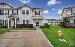 Beautiful End-Unit Townhome in East Haven at Savannah Quarters! Located in the upscale Savannah Quarters area, this stunning end-unit townhome offers a perfect blend of style, space, and convenience. The main level features beautiful wood flooring throughout and a thoughtfully designed layout with a spacious living room, dining area, and a convenient half bath. The kitchen is well-appointed with stainless steel appliances, dark cabinetry, and a large island with breakfast bar seating-ideal for both everyday living and entertaining. Upstairs, all bedrooms are privately situated. The spacious primary suite features an elegant tray ceiling, walk-in closet, and an ensuite bathroom complete with dual vanities, a garden tub, and a separate shower. Enjoy outdoor living on the cozy covered patio with extended pavers-perfect for relaxing or entertaining guests. Conveniently located just minutes from Pooler Parkway and I-16, with easy access to shopping, dining, and entertainment, this home offers both comfort and accessibility. No pets permitted.