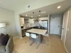 This bright and sunny 2nd-floor unit is move-in ready and fully furnished! Located across from the in-building gym, it features stainless steel appliances, quartz countertops, tile backsplash, in-unit washer/dryer, Bluetooth-enabled vanity mirror, and central AC. Enjoy a south-facing patio perfect for relaxing, plus one covered parking space included.