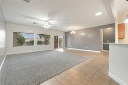 Beautiful 55+ Golf Course Community, 2 Bedroom Home, in North Las Vegas Nevada! The modern kitchen features a breakfast bar, a large kitchen island, and a stylish accent wall, perfect for cooking or entertaining. The primary suite boasts a large walk-in closet with an included storage hutch. The secondary bedroom has a mounted TV for ultimate relaxation. Outside, you’ll find a spacious 2-car garage and a serene community with access to a pond, basketball and tennis courts, and even a community restaurant for effortless dining. This community boasts a large golf course, nearby pickle ball courts, and is conveniently located near by Aliante Casino! Plus, enjoy the perks of a large laundry room with extra storage spaces and a thoughtfully designed floor plan that maximizes space and comfort. *Leaving the armoire in Den. Optional to come with property or owner can clear out.